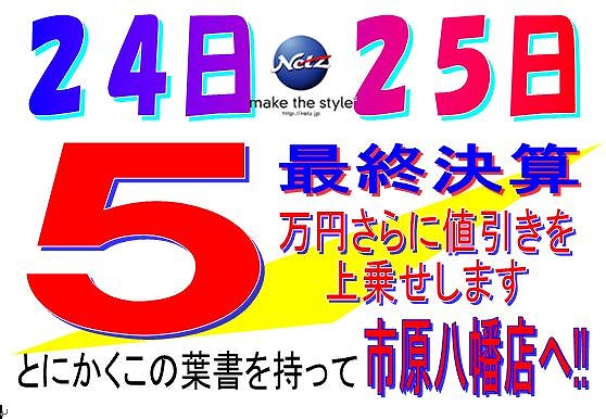 24,25が今年度最後の登録可能な最後のイベントとなります。どこにも負けないように、頑張ります。 お車買うなら市原八幡店で!! その後のアフターフォローも任せてください。