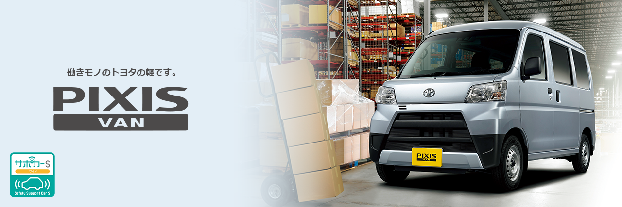 当店取り扱いの新車の中でも、通勤やドライブ以外で、 普段のお仕事でそのメリットを活かすバンタイプやトラックタイプの車も多数ご用意しております。 そのスタイルや利便性から数多くのお客様からご愛用頂いているレジアスエース、 一回り小さいサイズでバン・トラックと両方から用途によって選べるライトエース、 小回り抜群の軽自動車のピクシスと、 シーンに合ったサイズからお選びいただけます。 その中で、ピクシス バンがこの度マイナーチェンジ。 荷室の使い勝手はそのままに、多彩な運転席周りの収納に、 話題の安全装備、衝突回避支援システムが装備されたグレードも選択可能となりました。