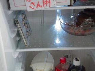 写真は冷蔵庫の中なんですが・・・何か左に普通冷蔵庫に入っていないものが入っています(笑)