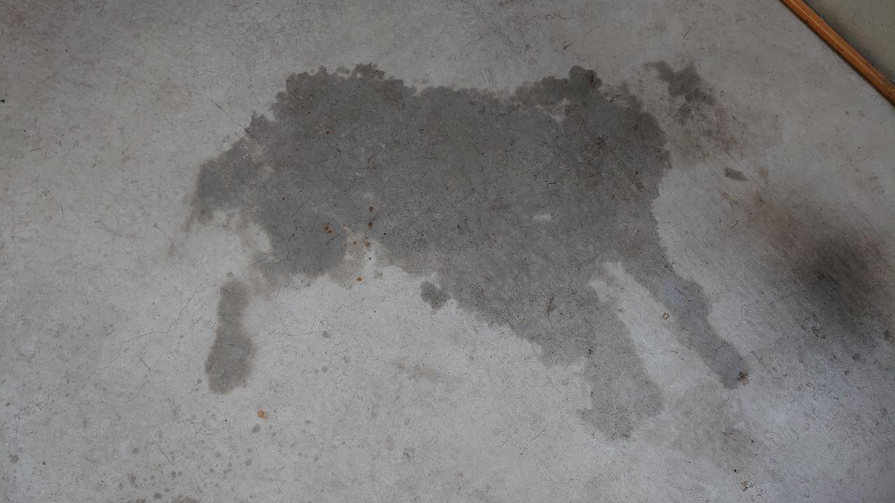 さて、写真は先日休みの日に、あまりに暑く我が家のワンコもへばっていた事と獣臭がしてきたので洗車ならぬ洗犬をしました。といっても、我が家は全てが雑なのでペットサロンなんてものには行かず、ホースで水掛けてシャンプーをバ~っと塗って、ワシャワシャと洗いすすぎで水を掛けるだけです。(ワンコはダブルコート犬種なのでアンダーコートにシャンプーが残らない様にすすぎだけは徹底的にやりますが) 洗犬後は自然乾燥という名の放置プレーですが、気付いたらガレージの車の後ろで寝ていたみたいで見事な魚拓ならぬ犬拓がとれました。 しかし、ここまでくっきりしているという事は微動だにしなかったんだろうなと思いました。 暑い日は水浴びに限りますね。では。