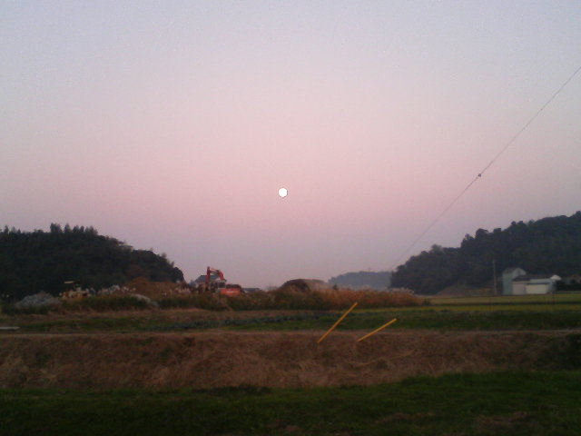 ポカポカ陽気の日曜日です。皆さんは何してました?いい天気でお店の前の「茂原街道」も渋滞中です。行楽のクルマや買い物の方たちでしょう。今日はこんな夕方近くに書き込んでるんです。内緒ですけど、疲れ気味でーす。^_^;写真は昨日の夕方の出たばかりの「お月様」です。あしたはお休みします。また火曜日に。