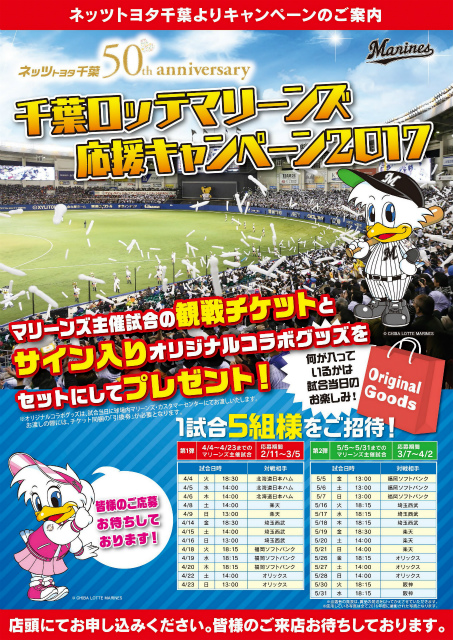 ☆------------------------------------------------------- 千葉県オールトヨタ2017試乗体感キャンペーン<6/10~25> --------------------------------------------------------☆ 期間中、千葉県内オールトヨタの新車店舗でご試乗された方の中から抽選でディズニーオンアイスへご招待やオリジナルグッズが先着14,500組様(千葉県オールトヨタ合計数)に当たるキャンペーンを実施中! ぜひこの機会に試乗してみませんか?