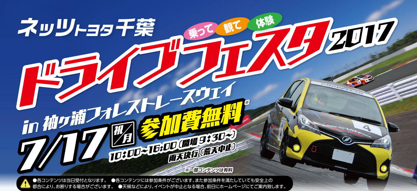 ☆------------------------------------------------------- 千葉県オールトヨタ2017試乗体感キャンペーン<6/10~25> --------------------------------------------------------☆ 期間中、千葉県内オールトヨタの新車店舗でご試乗された方の中から抽選で ディズニーオンアイスへご招待やオリジナルグッズが先着14,500組様 (千葉県オールトヨタ合計数)に当たるキャンペーンを実施中! ぜひこの機会に試乗してみませんか?