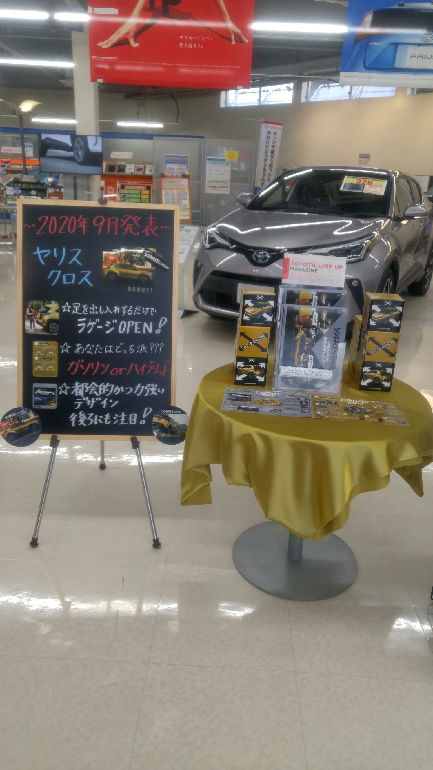 こんにちは~♡本日は朝から雨が降ってますね☺運転の際はお気をつけ下さい(^^)/9月に発売されました♪♪ ~* ヤリスクロス *~ブラックを展示しておりますが♡LOOK!!!見て体験!!!洗練されたデザイン&大きな収納力!是非ご来店された際はバックドアをOPENしてみて下さい(^^)/♪