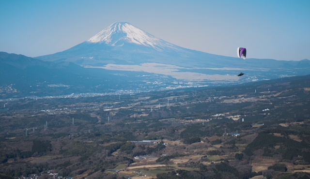 さて、年始一枚目の写真は、年末の恒例家族旅行の 途中で撮影した富士山です。パラセイリング?と いうのかな?気持ちよさそうに飛んでました。