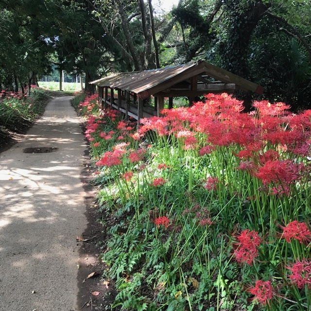 さて、今日の写真は、市原市内にある熊野神社の参道に ある、ヒガンバナです。 すごくきれいだったんですが・・・虫がすごくて撮影に 難儀しました(泣)