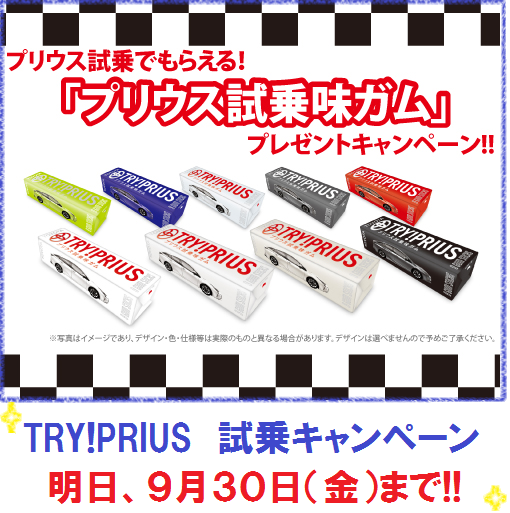 ・・・・・・☆彡・・・・・・☆彡・・・・・☆彡 本日、最終日! TRY!PRIUS 試乗キャンペーン 今日はお天気もいいですし☀ まだ、ガムも残っていますので ぜひプリウスの試乗に来てくださいね♪♪ お待ちしております❤