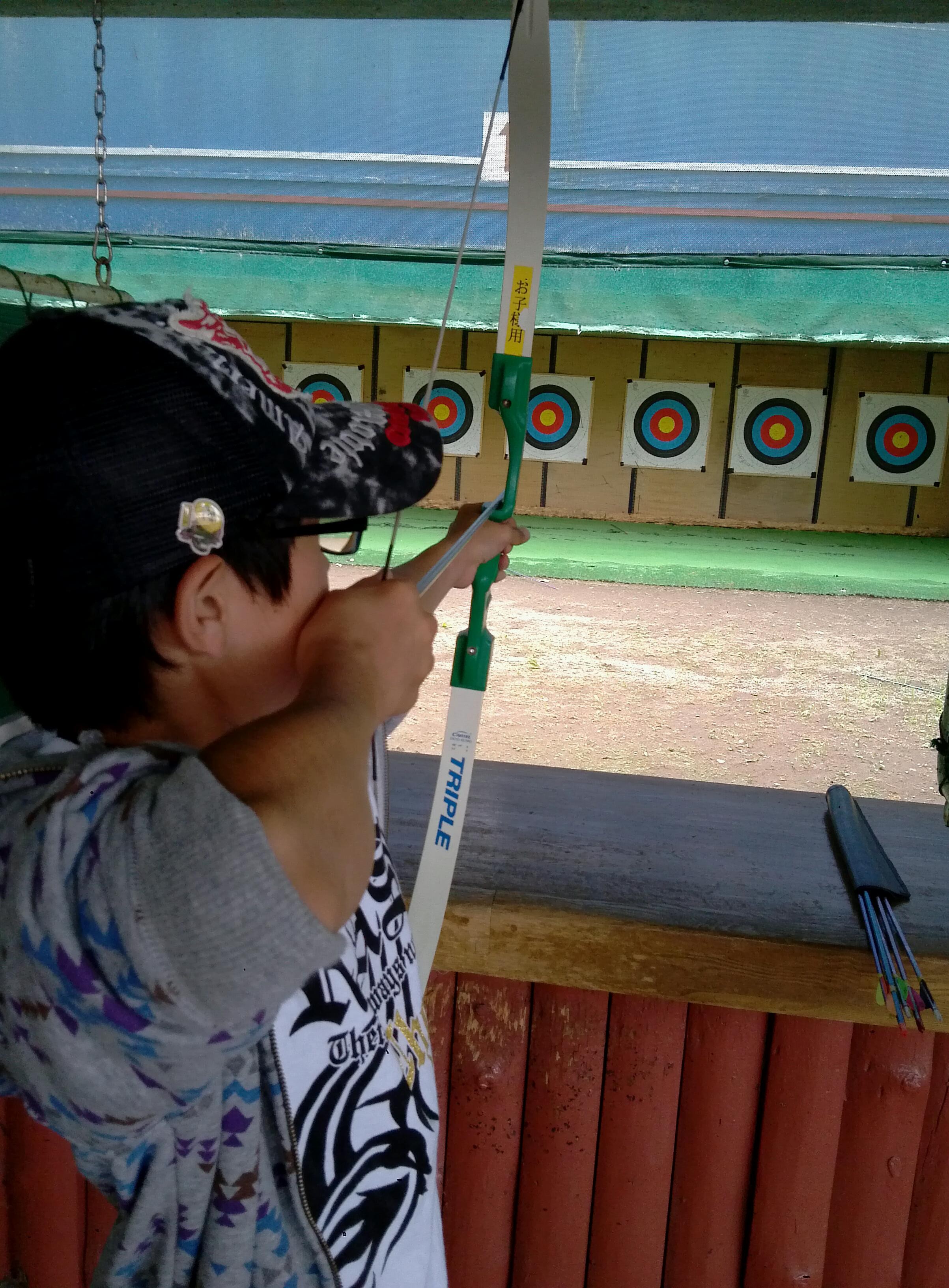 そんな中 アーチェリー体験に挑戦!! いや~これが難しい!! 的に当るどころか弓をひくことさえ 難しいんですよ・・・ 競技されていらしゃる方 尊敬いたします。