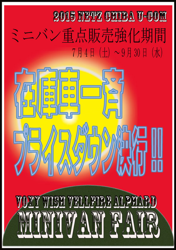 こんにちは!天気予報通り、雨が降ってきましたね!!フナコさんは雨に降られず川下りできているでしょうか??心配なセーラームーンです。私は明日、ひまわりを見に茨城へ行こうとしてるんですが、明日も天候があまりよくなさそうですね!(T∀T*)神頼みのてるてる坊主を作らなくては、、、(結構効果大だと信じてます☆)**ユーコム大決算市開催中***9/23のシルバーウィーク期間まで!!!!お車をお探しの方、ぜひチェックしてみてください(`・∀・)♪♪