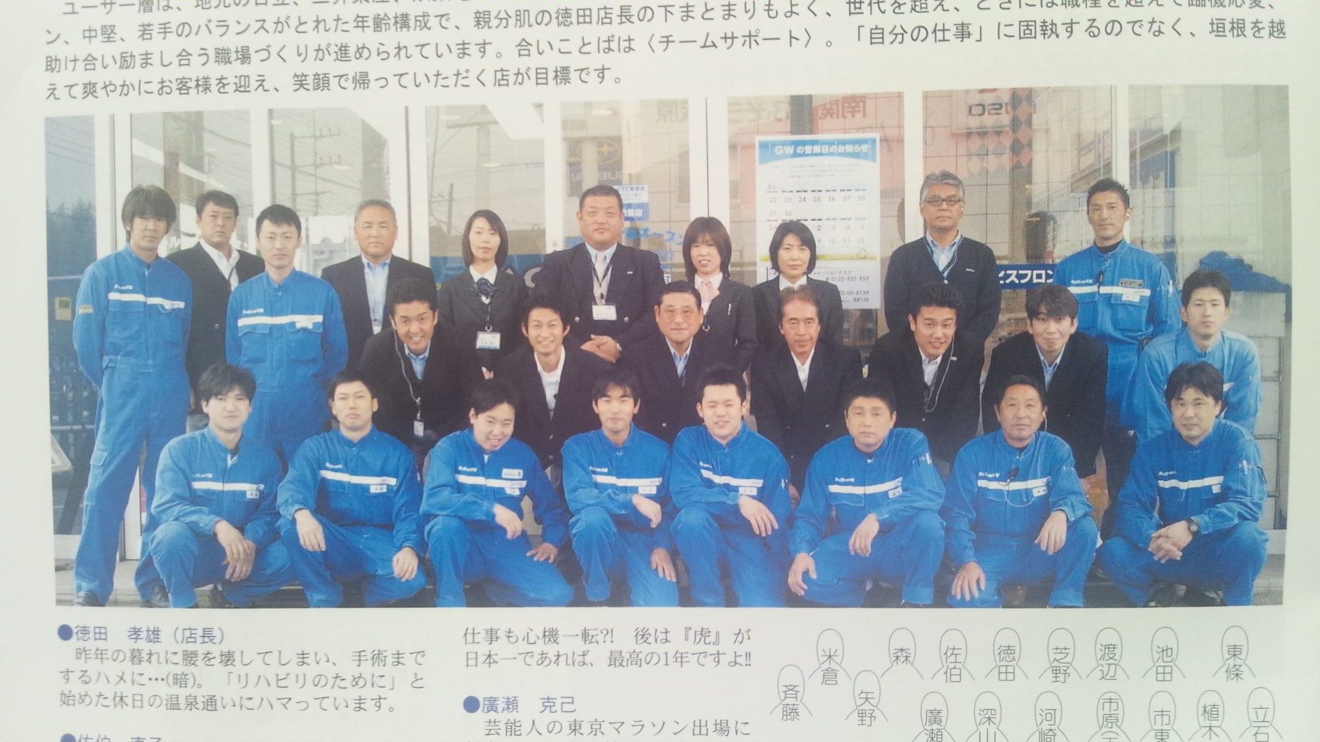 写真はVOICE という社内誌に載った茂原小林店の集合写真です。 合言葉は「チームサポート」。全員で力を合わせて頑張ろうというコトです。