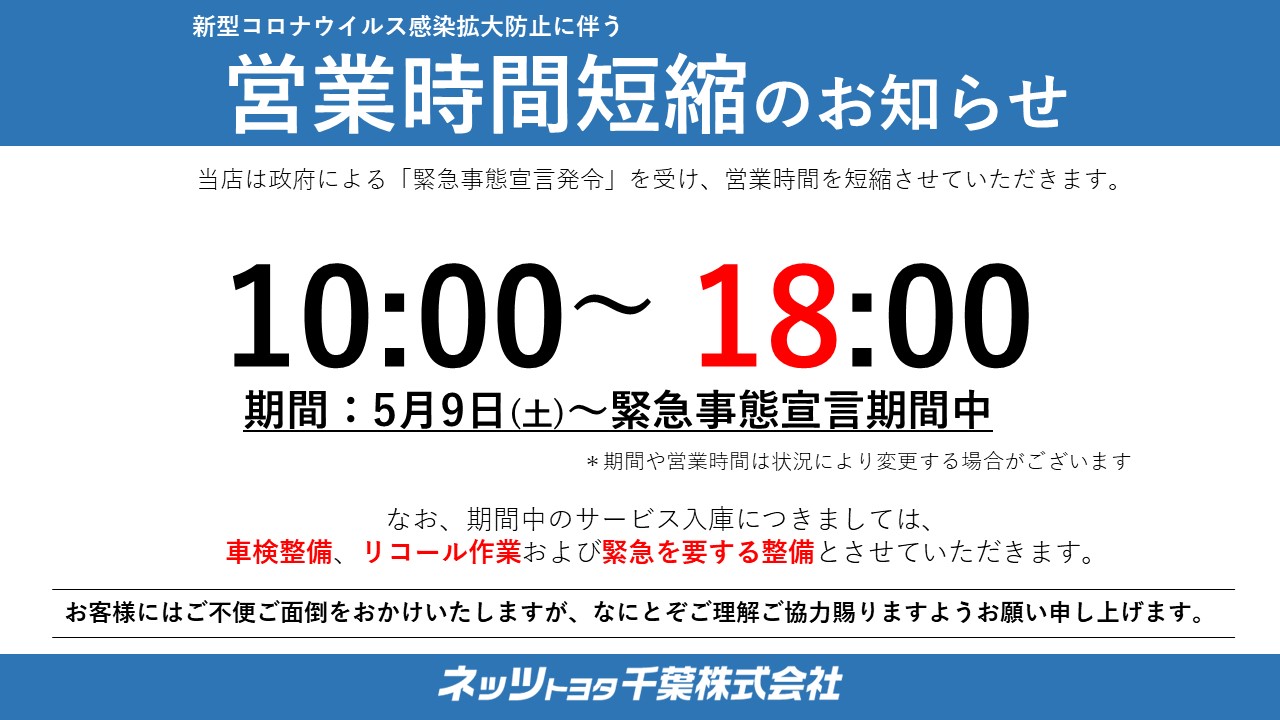 今日からは通常営業時間に戻ります。 ご迷惑をお掛け致しましたが、ご理解、ご協力ありがとうございました!m(__)m