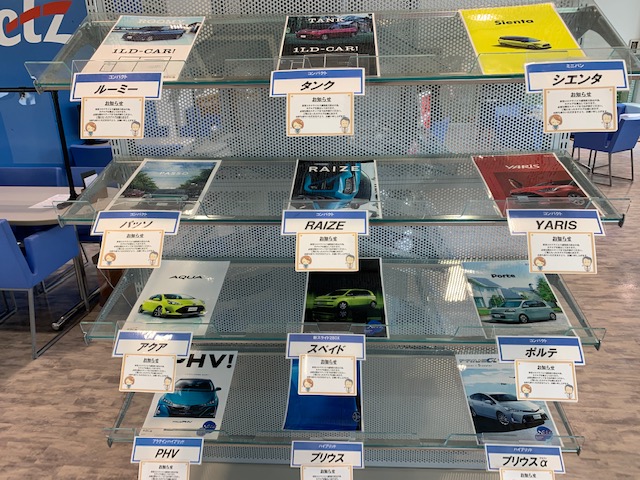 当店ではラインナップのみ掲示させていただき、カタログが必要なお客様には、お声がけいただき、未使用をお渡しすることにしました。 遠慮なくお声がけください。 そしてご覧になったカタログはそのままお持ち帰りをお願いします。