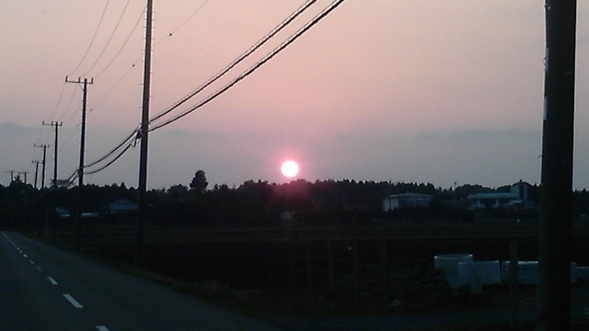 写真は発令の出た昨日の夕陽です。 とってもキレイな、まん丸の太陽が少しサビシイ 気がしました。