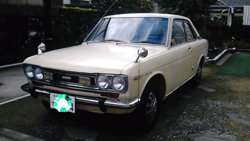 こんにちは~。 今日は「なつかしの名車登場コーナー!」 茂原のカトウさんチでは、お世話になってる WISHの他に、こんなクルマをお父さんが 飼っています。 名前は「ブルーバード、KP510型」なんと 昭和45年に新車で購入したそうです。 ちょうど今年40歳。スゴイ~!! ボクが「ブルーバード」と初対面した時は、 車検もナンバーも無く、10年位の冬眠中でした。 それが今年7月にご覧のとおり華麗な復活を 遂げました。 機械屋さんだったお父さんがエンジンやボディー も自分で修理してるそうです。 相当苦労してるハズですが軽~く話してくれました。 この「クリーム色の青い鳥」完全に不死鳥となりました。