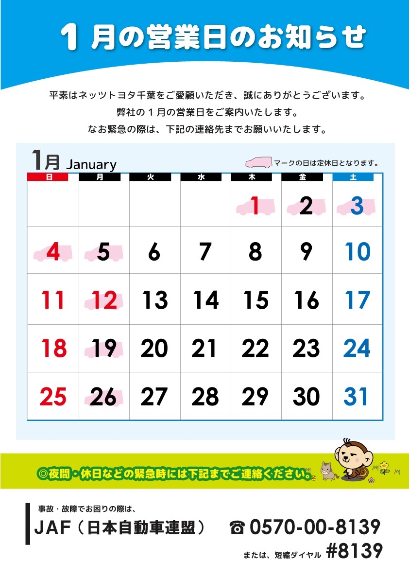 弊社は 12月27日(土)から 1月5日(月)まで