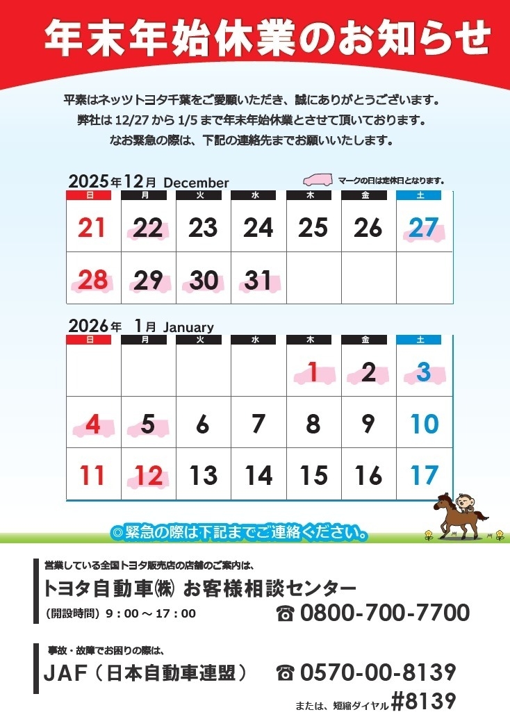 年末年始休業のご案内🎍🌅