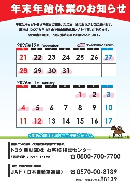 年末年始の休日のお知らせ