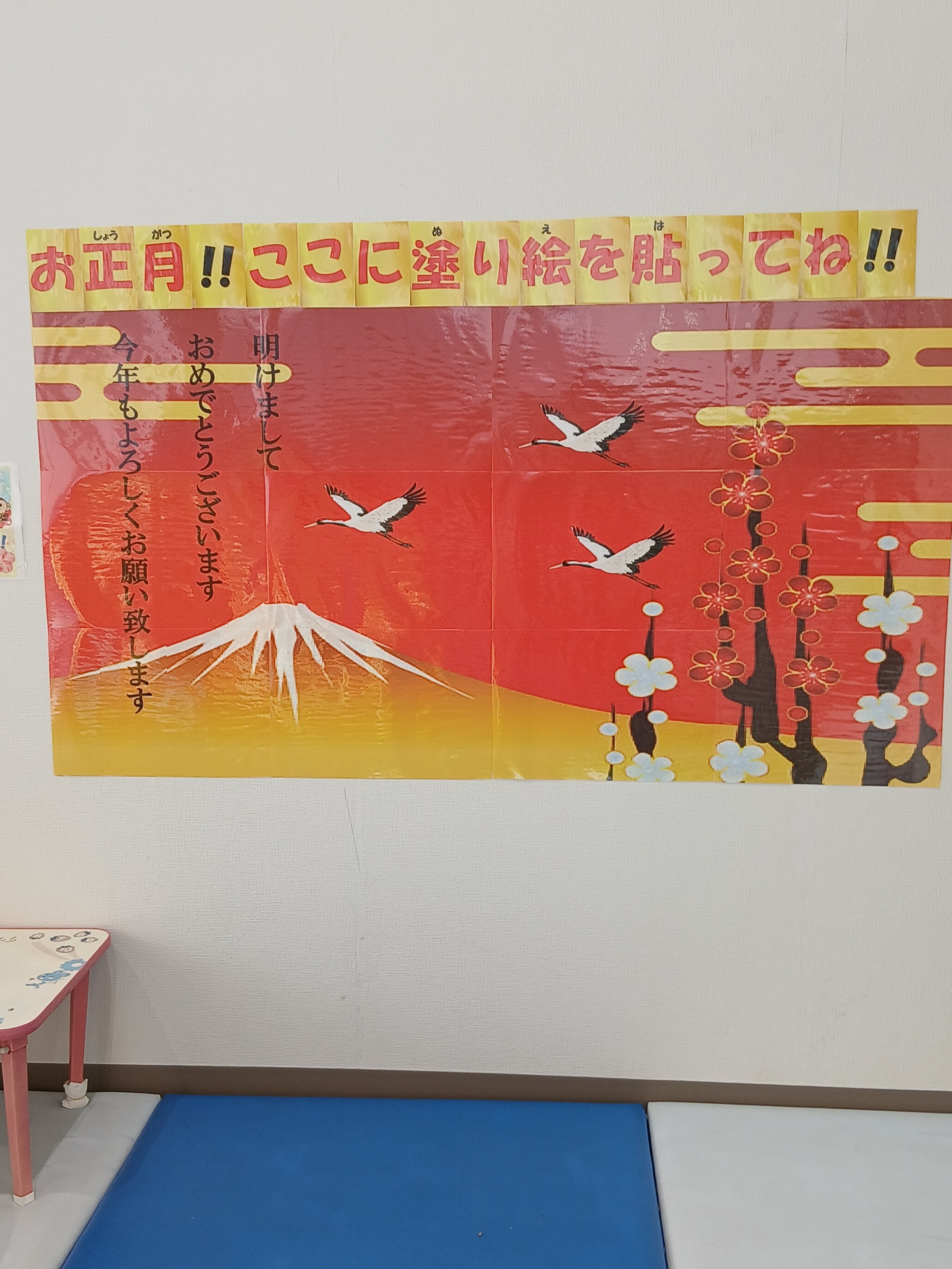 たくさん塗り絵を貼ってにぎやかな新年にして下さい。