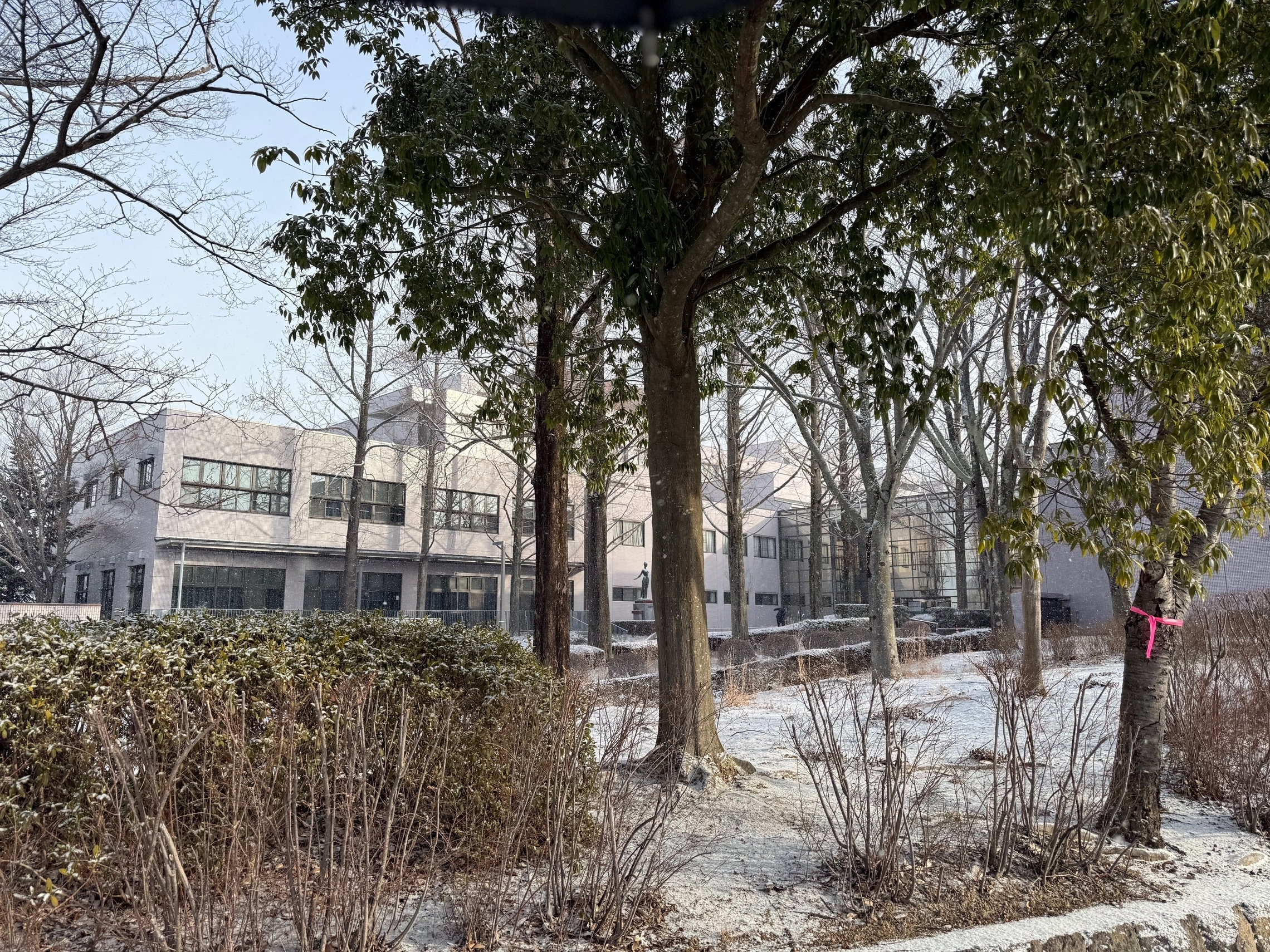 一月末の受験日はしっかり雪が積もっていました