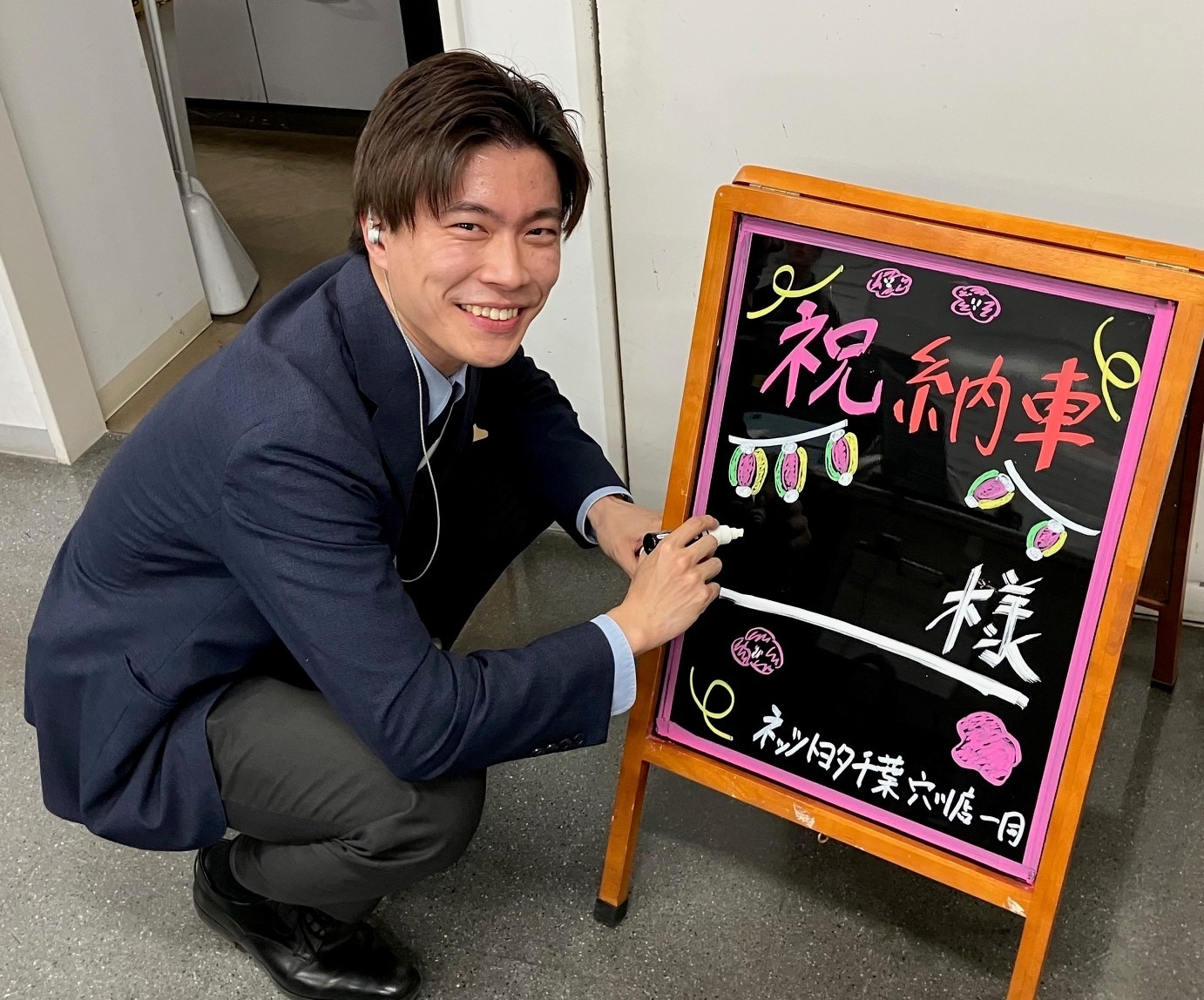 今回の納車ボードは、ひなまつりらしいやわらかな桃色と、春の明るさをイメージしたデザインがポイントです。
