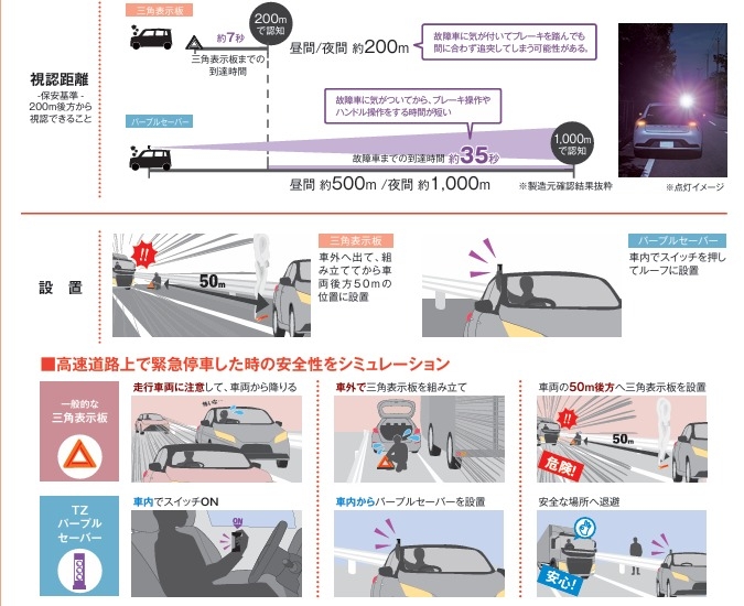 三角表示板との安全性の比較