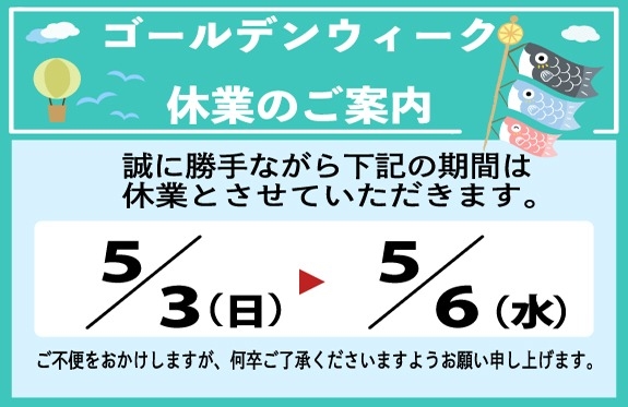 5月のゴールデンウイーク休業のお知らせでございます。